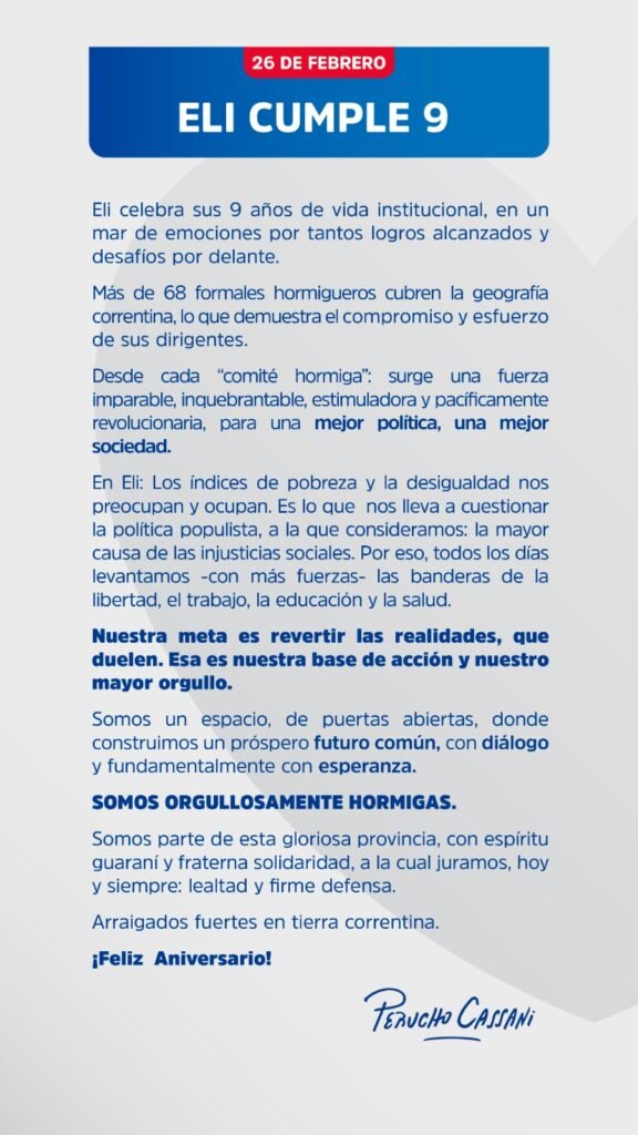 “ELI está enraizada fuerte en el corazón de Corrientes y los correntinos y no para de crecer”, fue la consigna señalando que “un árbol simboliza la vida misma”.